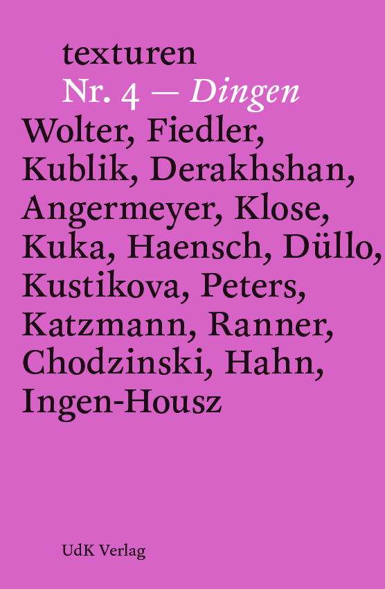 Der vierte Band der Reihe „texturen“ wendet sich den Dingen und all den Umständen zu, in denen sie existieren, sind, wirken und agieren, manches erzählen und anderes verschweigen. Das Buch vereint Reportagen, Bildstrecken und Essays, die mit einer Sensibilität und Awareness auf die materiellen Dinge, ihre Kulturen und immateriellen Ströme aus Bezüglichkeiten und Beziehungen blicken.